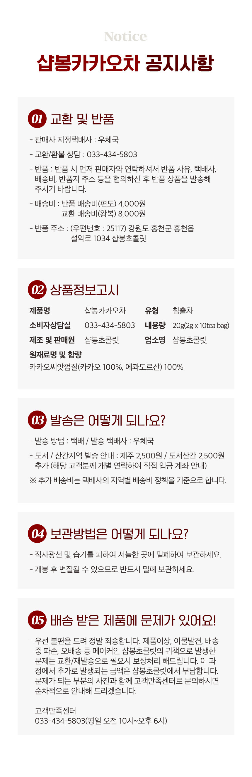 이너뷰티를 위한 건강한 선택 프리미엄 차 샵봉 카카오 차